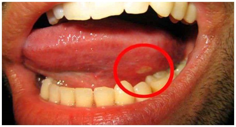 • Pequenas feridas abertas presentes no interior da boca, brancas ou amareladas, com contorno vermelho brilhante. Costumam estar mais presentes na língua e nas paredes da boca;